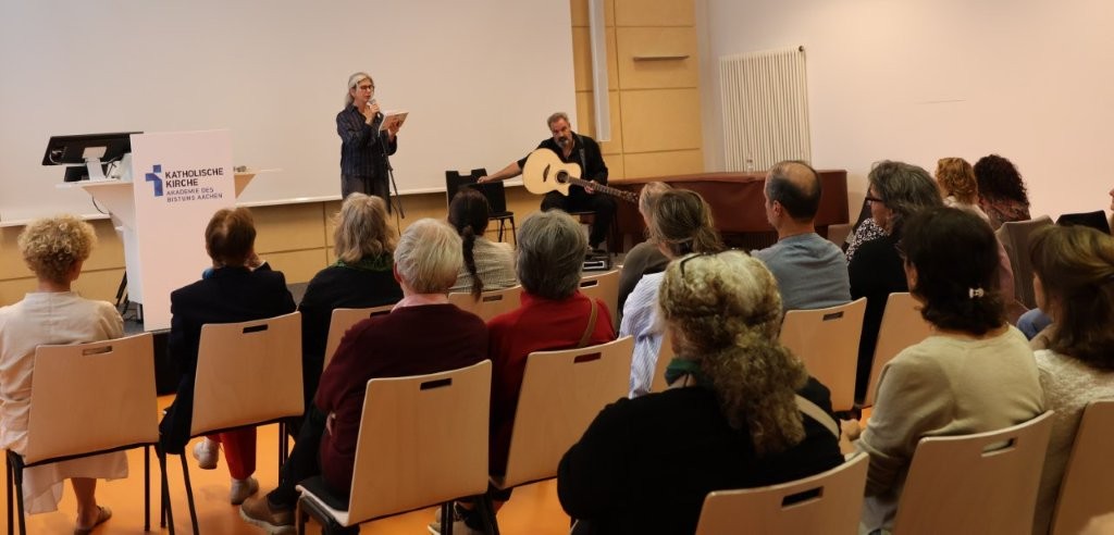 Mariam Claren (Startseite — HÁWAR.help) berichtete über die aktuelle Situation im Iran und Hilde Scheidt erzählte von dem Engagement in Aachen unter dem Motto FRAU.LEBEN.FREIHEIT.